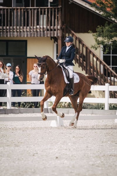 Strahli est venu chez moi à l'âge d'un an et demi, car j'ai été immédiatement tombé amoureux de lui lorsque je l'ai vu pour la première fois ! Il se distingue non seulement par son apparence élégante, mais aussi par son caractère amical et câlin. Il maîtrise déjà les leçons de niveau M avec assurance et effectue vraiment un joli saut. Il apprécie particulièrement les longues promenades à travers la forêt. C'est un véritable polyvalent et il est toujours léger à monter ☺️ Très adapté à l'élevage en groupe, car il est super sociable et s'entend avec tout le monde. Je ne le laisse partir qu'avec un cœur très lourd et vraiment seulement dans un foyer aimant d'un cavalier de loisir ambitieux, de préférence avec des ambitions de compétition, mais cela ne doit pas être la priorité. Malheureusement, il a un constat depuis son jeune âge, c'est pourquoi il est proposé à un prix bien inférieur à sa valeur. Pour plus d'informations, n'hésitez pas à me contacter par téléphone.