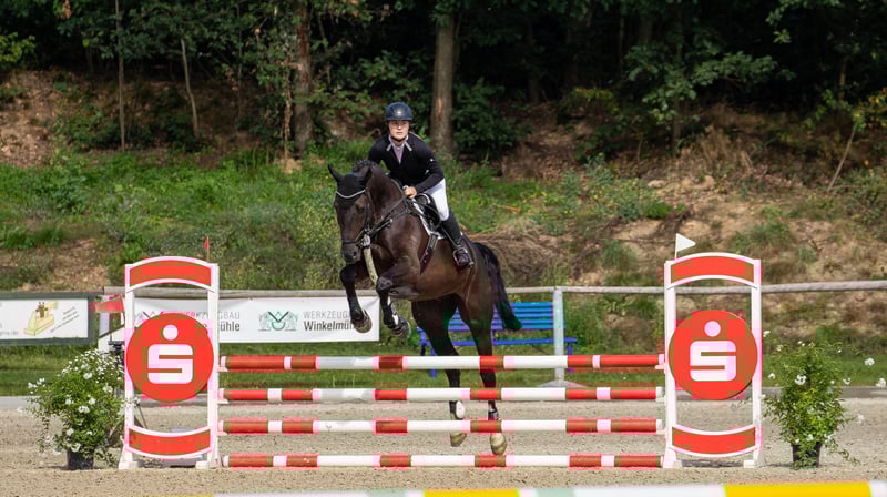 Zum Verkauf steht ein talentierter und sehr rittiger Wallach, der mit Vermögen, Übersicht und guter Einstellung am Sprung überzeugt. Aktuell wurde er bereits bis 1,15 m (Klasse L mit steigenden Anforderungen) vorgestellt und zeigt sich dabei stets motiviert, leistungsbereit und zuverlässig. In Springpferdeprüfungen konnte er bereits Noten bis 8,1 erzielen. Auch unter dem Sattel überzeugt er durch seine angenehme Rittigkeit und eine solide Grundausbildung. Lektionen wie Schenkelweichen sowie Galoppwechsel führt er sicher aus. Durch seine gute Ausbildung kann er problemlos auch in der Dressur vorgestellt werden, wodurch er ebenfalls für den Vielseitigkeitssport interessant ist. Im täglichen Umgang zeigt er sich unkompliziert, brav und zuverlässig. ✔️ verladefromm ✔️ geht alleine sowie in der Gruppe ins Gelände ✔️ angenehm im täglichen Handling ✔️ verträglich mit anderen Pferden und kennt größere Gruppen auf der Koppel Ein sehr interessantes Pferd für ambitionierte Reiter, die einen zuverlässigen Partner mit Qualität, Charakter und weiterem Entwicklungspotenzial suchen. Videos sind vorhanden. ⸻ 📞 Kontakt & Besichtigung Anfragen bitte telefonisch unter: 📞 0341 / 98995223 🕘 Mo.–Fr. 09:00–18:00 Uhr 🕘 Sa. 09:00–15:00 Uhr 🚫 Sonntag Ruhetag ⸻ 🐎 Probereiten 💶 30 € pro Pferd (max. 2 Reiter) → wird bei Kauf gutgeschrieben 💶 Feiertage: 50 € Absagen bitte mindestens 24 Stunden vor dem Termin, andernfalls wird dieser berechnet. 💶 Vorführen durch unsere Bereiter (ohne Probereiten / Bodenarbeit etc.): 25 € pro Pferd ⸻ Ankaufsuntersuchungen können selbstverständlich durch Ihren oder unseren Tierarzt durchgeführt werden. Beim Transport ins neue Zuhause unterstützen wir ebenfalls gerne. 🌐 www.deutsche-pferde-boerse.de Weitere interessante Verkaufspferde befinden sich in unserem Verkaufsstall sowie auf unserer Homepage. Hinweis: Stockmaßangaben sind Schätzungen des Verkäufers und stellen keine zugesicherten Eigenschaften dar.