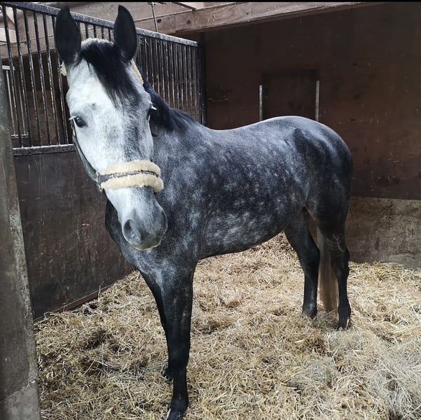 For Sale: German Warmblood Gelding An impressive German Warmblood gelding, born in 2015, is available for purchase. Standing approximately 16.1 hh, he captivates with his elegant gray coat. This talented gelding shows great potential in dressage as well as jumping, making him suitable for eventing too. He impresses with his excellent movement, balanced temperament, and willingness to learn. He is suitable for both experienced riders and ambitious amateurs who wish to further his training. The gelding is well-behaved, well-mannered, and has a solid basic education. For inquiries or more information, please feel free to contact me. Viewings and trial rides can be arranged by appointment.