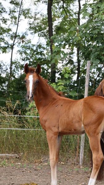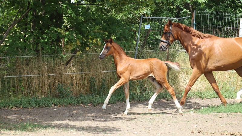 Aufgrund unzuverlässiger Käufer, ist unser „Blackout“ wieder zu haben. Er stammt ab von HLP-Sieger Brenton (Bonds-Dancier) aus einer Fürstenstern - Decurio Mutter. Blackout besticht durch einen menschenzugewandten Charakter, stehts neugierig und schwer aus der Ruhe zu bringen. Am 13.05.2025 wurde er geboren und wächst seit dem in einer kleinen Stutenherde auf. Halfter und Hufe geben kennt er bereits. Seine Vollschwester aus dem Vorjahr steht bei dem Besitzer seines Vaters in Aufzucht. Blackouts Mutter „Divana“ stammt ab aus der Hannoveraner Familie der Ostera. Diese Familie wird von den Züchtern seit mehr als 30 Jahren gepflegt und hat bisher grundsolide Freizeitpferde gebracht, die allerdings auch mit Tendenz zum höheren Dressursport ausgestattet sind. Divana selbst war Verbandsprämienanwärterin und hat nicht nur gute Bewegungen sondern zeigt sich auch beim Freispringen motiviert und mit einem tollen Vermögen für ein Dressurpferd. Das Inserat ist im Auftrag der Züchter und Besitzer erstellt.