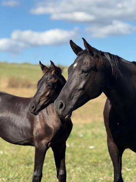 We are selling a very noble black colt by the Trakehner stallion Ivanhoe (Gestüt Hörem). He is incredibly typy and equipped with very good basic gaits, making him certainly interesting for stallion breeders. Our breeding mares all have a very friendly and willing character, so we can expect this from their offspring as well. The expected final height is approximately 170 cm. He is growing up in a mixed herd with two other foals. Our horses spend the summer in large pastures and in winter they live outside in an open stable with a run of about 1 hectare. Raising him is possible if desired. We have been breeding riding horses for 15 years and therefore have many years of experience in breeding and raising. A meeting can be arranged at any time by appointment. In spring 2026, we will also have a then 3-year-old son of Freiherr von Stein for sale. He is currently here for raising with another stallion. If interested, I can gladly provide more information.