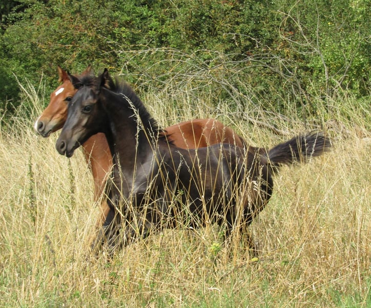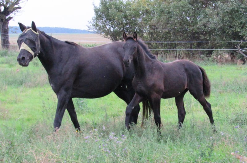 Nous vendons un très élégant poulain noir, fils du hongre Trakehner Ivanhoe (Élevage Hörem). D'une beauté typique incroyable et doté de très bonnes allures fondamentales, il est certainement intéressant pour les éleveurs de hongres. Nos juments d'élevage se distinguent toutes par un caractère très amical et désireux d'apprendre, ce qui nous permet d'attendre la même chose de leur descendance. La taille finale attendue est d'environ 170 cm. Il grandit dans un troupeau mixte avec deux autres poulains. Nos chevaux passent l'été dans de grands pâturages et, même en hiver, ils vivent à l'extérieur dans un abri ouvert avec un enclos d'environ 1 hectare. Une prise en charge serait possible, si souhaité. Nous élevons des chevaux de selle depuis 15 ans et avons ainsi une longue expérience en matière d'élevage et de soins. Une rencontre est possible à tout moment sur rendez-vous. Au printemps 2026, nous aurons également un fils de Freiherr von Stein, âgé de 3 ans, à vendre. Celui-ci est actuellement en élevage avec un autre hongre. Si vous êtes intéressé, je peux vous fournir plus d'informations.