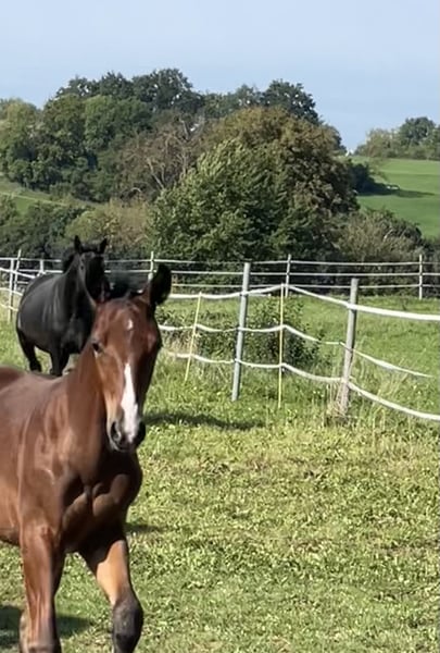 Notre adorable foal de studbook DSP, né en avril 2025, s'appelle « Sir Henry » et est issu de Simonetti x Pilotek. C'est un poulain très élégant, doté d'une base solide et d'une grande présence. Il se déplace avec de très bonnes allures de base et se distingue surtout par son caractère exceptionnel. Équilibré et très proche des humains, il est le préféré de mes enfants. Ses origines lui offrent d'excellentes prédispositions pour le concours complet, son frère cadet étant déjà en pension dans un élevage renommé. Sa mère provient d'une lignée ancienne et réputée en concours complet, et a passé une excellente épreuve de performance. Très montable avec de bonnes allures de base, elle a 18 ans mais reste en pleine forme et est régulièrement montée parmi les poulains. Tous nos poulains grandissent dans des conditions respectant leur développement naturel, issus de lignées performantes, et maîtrisent le vocabulaire de base du poulain. Ils sont régulièrement vermifugés et présentés au maréchal-ferrant. Pour une éventuelle poursuite de l’élevage, le poulain pourrait rester, mais devrait être castré avant la saison de pâturage. N'hésitez pas à me contacter également par téléphone au 0177 89 85 761.