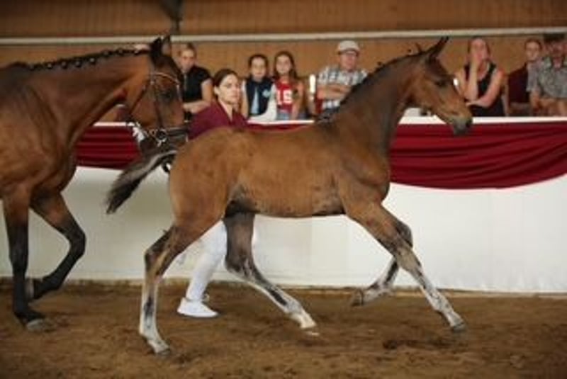 Sportiv aufgemachtes Hengstfohlen, was sich für den späteren Sporteinsatz empfiehlt. Zum Fohlenchampionat in Thüringen konnte es sich bereits vor großem Publikum präsentieren.