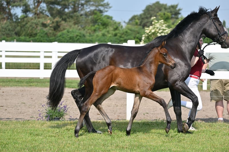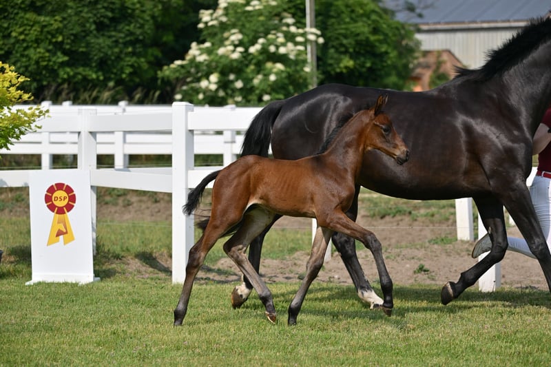 Zum Verkauf steht ein hochinteressantes Hengstfohlen des Jahrgangs 2025 mit klarer Perspektive für den Dressursport. Der braune Bandos B überzeugt durch eine elegante Erscheinung, viel Ausdruck und hervorragende Bewegungsanlagen. Anlässlich der Fohlenschau wurde er als Prämien- und Championatsfohlen ausgezeichnet und unterstreicht damit bereits früh seine außergewöhnliche Qualität. Abstammung Vater: Bonds Bonds zählt zu den aktuell bedeutendsten Dressurnachwuchsvererbern Deutschlands und führt die FN-Zuchtwertschätzung an. Er war selbst Körsieger, HLP-Sieger sowie S-Dressur erfolgreich. Im Jahr 2025 stellte Bonds den überragenden Körsieger der DSP-Hengsttage in München, der für 770.000 € versteigert wurde und den Körsieger der OL-Hengsttage in Vechta – weitere eindrucksvolle Belege seiner Vererbungskraft. Mutter: Gribaldis Märchen Die Mutter brachte neben mehreren Staatsprämientöchtern, bereits die S-Dressur erfolgreiche Unibaldi v. United sowie mehrere Staatsprämienstuten. Ihre Schwester Uniteds Märchen v. United – Heraldik xx ist Grand-Prix-erfolgreich unter Kathleen Kröhnke, ihr Bruder v. Confess Color wurde gekört. Der hocherfolgreiche Mutterstamm Almmärchen aus dem Hause Kamphorst ist bekannt für zahlreiche gekörte Hengste und Grand-Prix-Pferde. Fazit Bandos B vereint erstklassige Genetik, Prämierung und vielversprechende Perspektiven für Zucht und Sport. Ein Hengstfohlen für Dressurreiter, die frühzeitig in Qualität investieren möchten. 📍 Standort: Schönwalde-Glien 📞 Bei Interesse oder für weitere Informationen melden Sie sich gern per WhatsApp unter 0160/94418086