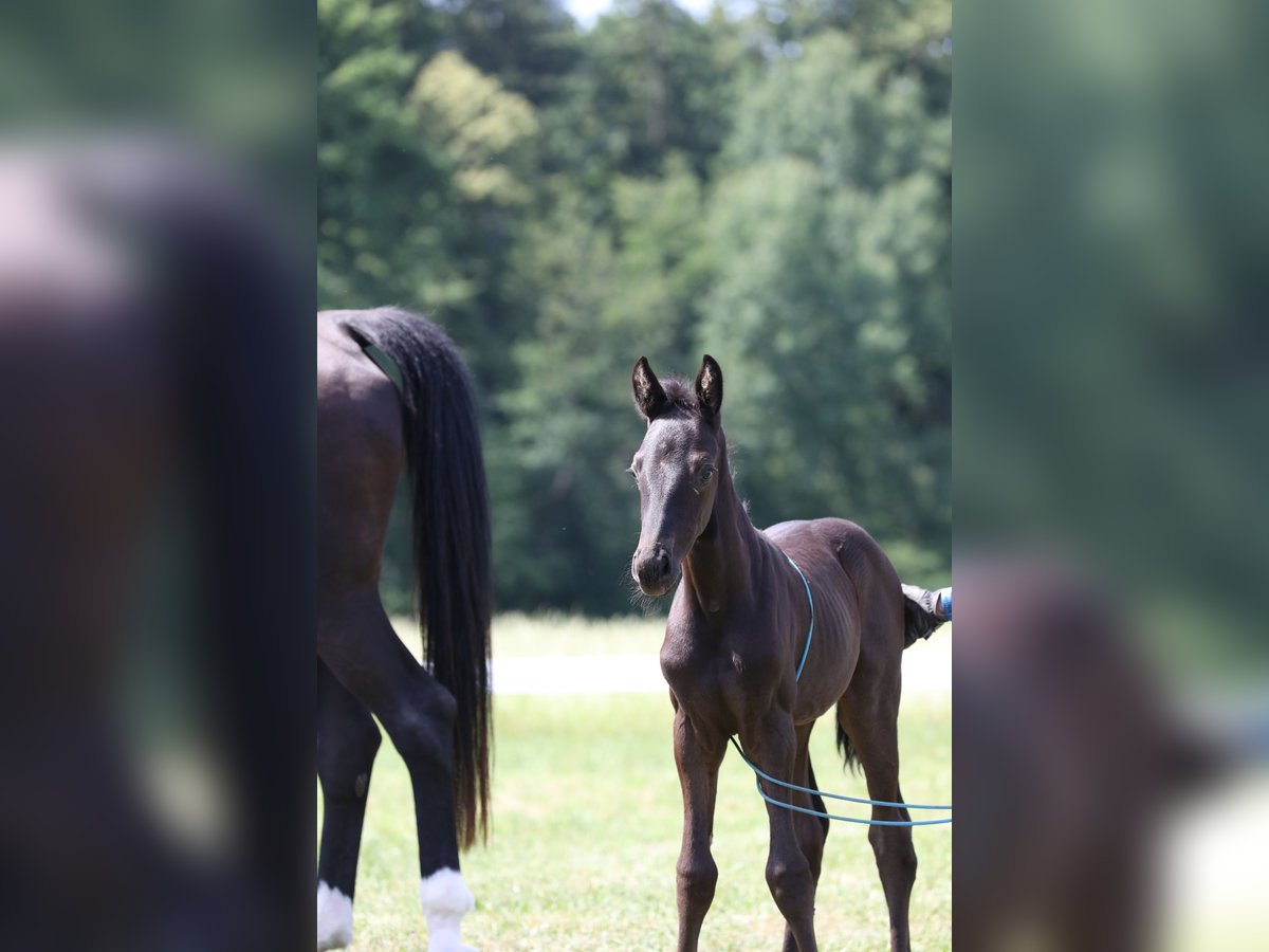 Here we offer a black colt by FLORICELLO OLD out of the Hanoverian state premium and elite mare SAPHIRA by SANDRO HIT x DONNERHALL x PIK BUBE x FUTURO. The foal is in perfect health, has a refined physical appearance, is jet black, and moves with ease. Born on May 29, 2025. The mother of the foal is a direct sister to the mare HEIDEBLUME, who is also the mother of the current Aachensieger ZONIK PLUS. The mother of the foal has been awarded elite mare status and DSP premium mare status due to her own sport-successful offspring. Her most successful offspring include SCHWARZE PRINZESSIN by NEGRO, who has been successful at S* level, and JOHN F. KENNEDY by JOHNSON, who has won at M** level. The grandmother of the foal, StPrSt. DOREEN by Donnerhall, is registered in Hanover with a score of 10 for her walk. This expansive walk is consistently found in her descendants. The colt can remain with us for upbringing if needed. For serious inquiries, please call directly: 0172 - 839 66 50 - Rainer Lechl.