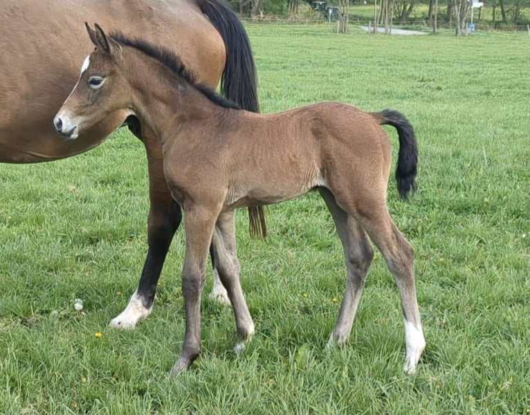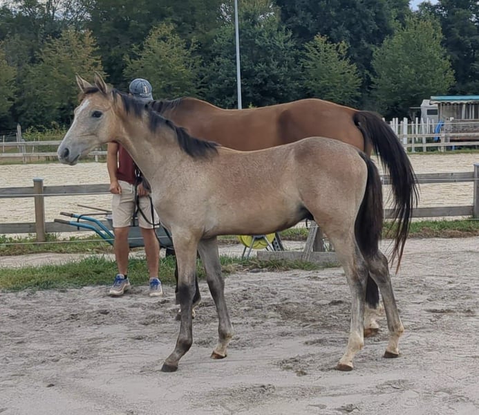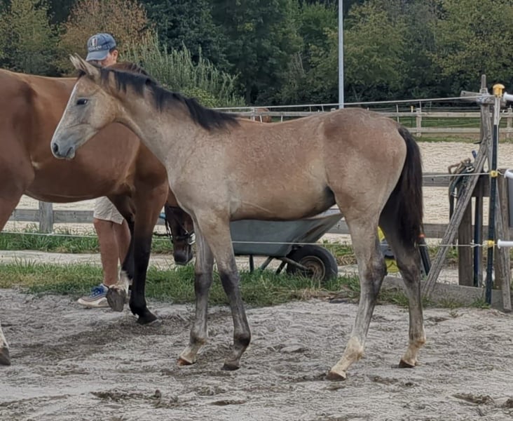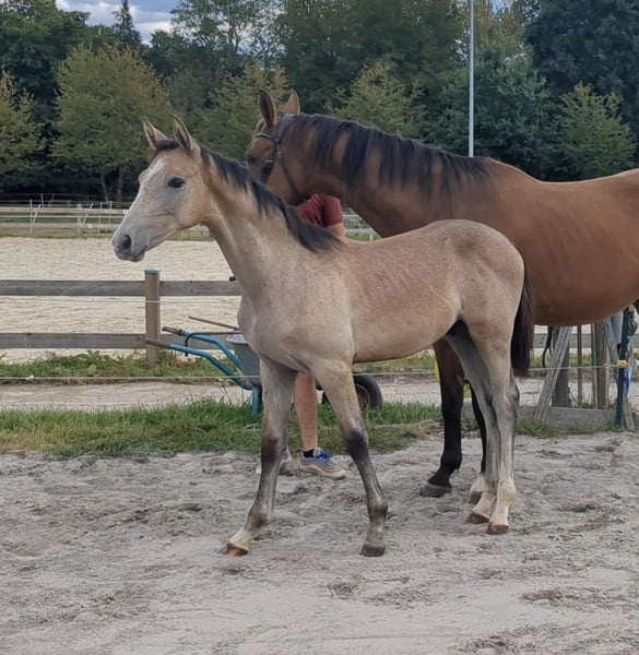From our own breeding, we are offering a stunning and correctly built colt by Vingino. He has three very good gaits, with his impressive, expressive, uphill canter standing out in particular. His sire, Vingino, was highly successful up to 1.60 m and requires no further explanation. The foal’s dam has been successfully competed by our children in show jumping from WB to M-level and also in dressage up to Kl. A. She is characterized by her wonderful temperament. Additionally, she is very easy to ride and has never let our children down in the arena. Feel free to contact us via WhatsApp for more information or videos.