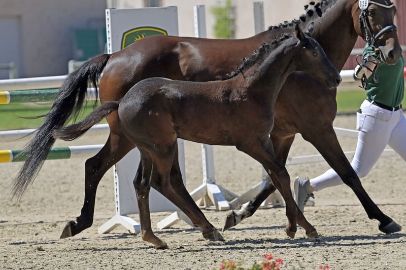 For sale: a very typey, elegant, long-legged colt with excellent movement. The foal was Reserve Champion Foal at the Foal Championship of Rhineland-Palatinate Saar. His sire, Corrinaro by Corrado II, has multiple placings in S-class show jumping competitions. His dam, Zyleia by Zinedream, is a candidate for the State Premium and descends from a Balou du Rouet mare who was placed up to M-level show jumping.