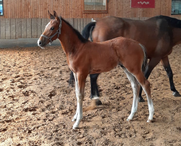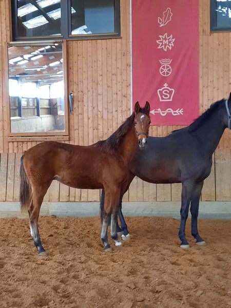 This colt from the first crop of Stakkato Cornet is for sale. Born on 04.04.2024. His dam St.Pr.St Leona Lewis by Ludwig von Bayern bears the title DSP premium mare breeding. All her foals are premium foals. Her two daughters are also state premium mares. Le Casira B is successful in elementary class show jumping competitions and has won the 3-year-old field performance test. Lia Casira B was reserve champion mare at the Saxon-Thuringian Mare Championships in Wolfersdorf. With a score of 9.5 in free jumping. She already had an auction foal at the DSP Elite Auction in Darmstadt-Kranichstein. All horses from the mare family are well-behaved and easy to handle. There are also no problems when breaking in. Please call if you have any further questions about the foal.