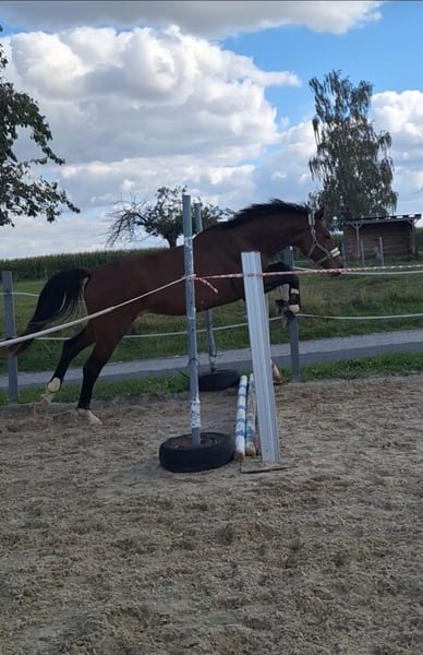 For Sale: German Sport Horse Stallion – Born 2023 We are offering a promising German sport horse stallion, born in 2023. This bay horse impresses with its elegant appearance and outstanding potential in dressage. Standing at 16.1 hh, he is the perfect size for ambitious riders seeking a reliable partner for the future. His gentle temperament makes him appealing to both experienced riders and talented young riders. If you are interested or have further questions, please feel free to contact me. I would be happy to arrange a viewing and a chance to get to know him!