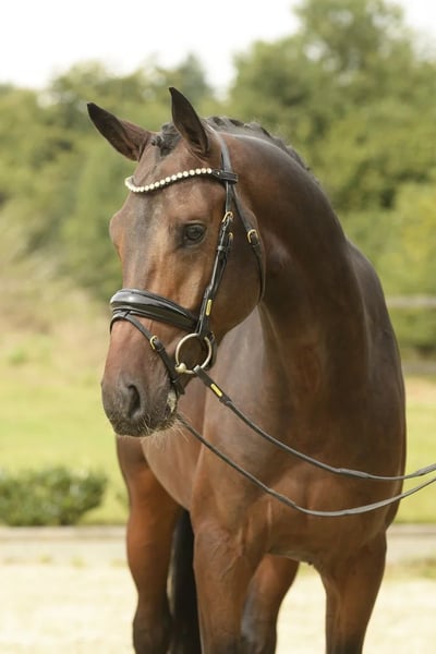 Sympathischer Youngster mit tollem In- und Exterieur. Der noch anfänglich in der Ausbildung stehende gekörte Hengst, zeigt sich mit sehr guten GGA und Arbeitseinstellung. Auffallend in der Erscheinung, hat er viel Potenzial für die Zukunft. Nominiert zum Bundeschampionat 2025