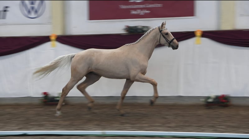 German Sport Horse for Sale – Stallion, born 2023, Palomino From a young age, our shining star impressed: he was the overall champion foal at the foal show in Kränzlin and also won the champion foal title. Even then, the judge was convinced: an outstanding half-blood foal of exceptional quality! In the sought-after Palomino color and with a height of 17.2 hh, he is a true eye-catcher. The stallion has a correct conformation and a harmonious build. Strahlemann F demonstrates very good elastic basic gaits and exhibits a lively trot with significant shoulder freedom. In free jumping, he shows great overview and an impressive scope. He is well-mannered and has a pleasant temperament. His excellent pedigree and pronounced movement talent suggest a promising future in sport or breeding. Strahlemann F is being offered directly from the breeder. He has been raised in a group on large pastures with good care. Radiographs for soundness are available. If interested, we look forward to hearing from you to provide more information and to arrange a viewing.