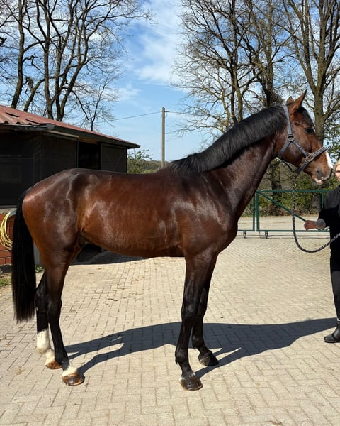 4 jähriger Hengst. Sehr schonend erst vor 3 Monaten angeritten worden. Alle Röntgenbilder vorhanden (sehr sehr gute Bilder!). Macht schon die ersten Sprünge unter dem Sattel. Top Abstammung, Zinedine/Vagabond de la Pomme