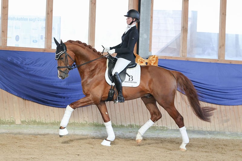 BURGHOF OPEN SALES WEEKEND from October 2nd to 5th, 2025 Try riding - Place a bid - Buy a horse All information and the complete collection (32 sale horses) at: https://brodhecker-burghof.de/open-sales-weekend-kollektion/ Don Ampere impresses with three outstanding basic gaits, excellent rideability, and a quick understanding. Last year, he already secured numerous top placements in dressage horse tests of class L and is now showing reliable performance in class M. His sire Don Royal was the champion of the licensing, double association champion in Brandenburg-Anhalt, and also a double DSP champion. Through Don Juan de Hus, Jazz, and Krack, he embodies the best Dutch dressage genetics. Don Ampere's dam line is also quite special: His grandmother Poetin IV is a full sister to the licensed stallions Samba Hit I-V and the sport-successful mares Poetin I-VI. Her most prominent sister, Poetin I, won at the Bundeschampionat at ages 3 and 6 and became world champion of the 6-year-old dressage horses. If you are interested in our sale horses, please feel free to contact us by phone or WhatsApp: Show Jumping Horses - Tel. (+49)159/06026914 (Johannes Brodhecker) Dressage Horses - Tel. (+49)172/8733686 (Volker Brodhecker)