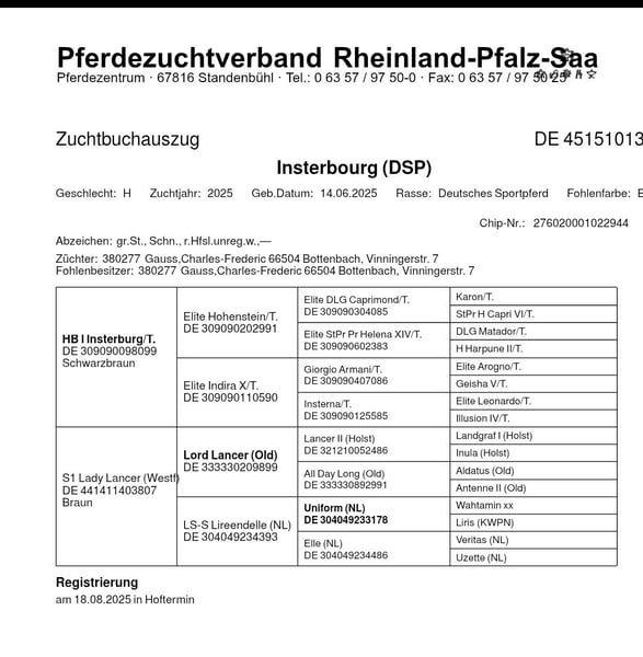 **Verkaufsanzeige: Deutsches Sportpferd** Zum Verkauf steht ein vielversprechender Hengst, geboren im Jahr 2025. Dieses braune Deutsches Sportpferd -Fohlen. hat ein Stockmaß von z.Z. 130 cm und wird vermutlich ca 1,68 /1,70 .Ziel ist das Viereck oder der Springsport . Er zeichnet sich durch seine elegante Bewegung und sein ausgeglichenes Temperament aus. Mit viel Potenzial und einer positiven Einstellung ist er ideal für ambitionierte Reiter, die in der Dressur durchstarten möchten. Der Hengst ist gut erzogen . Fohlen Abc ist selbstverständlich. Anschauen kommen /., verlieben..... DEIN Pferd Bei Interesse oder für weitere Informationen stehe ich Ihnen gerne zur Verfügung. Besuchen Sie uns und überzeugen Sie sich selbst von diesem zukünftigen talentierten Sportpferd!