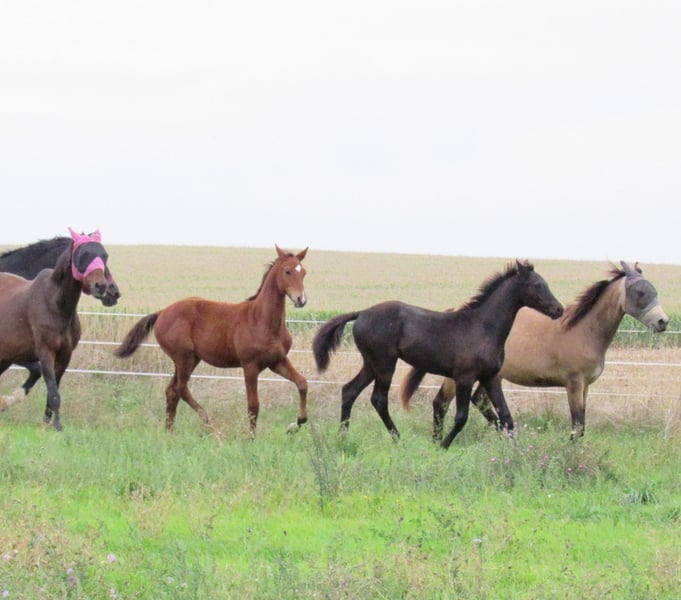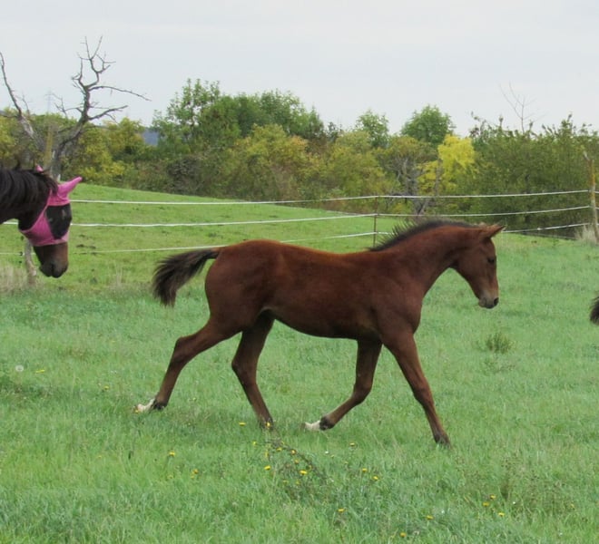 Nous vendons un poulain hongre de grande taille et robuste, issu de l'étalon Holsteiner Chinchero (de la station d'étalons Völz). Il possède une belle galopade en montée, ce qui laisse présager un grand confort d'équitation futur. Le pas et le trot sont également d'une très bonne qualité de base. Il est déjà très grand et costaud, de sorte qu'on peut s'attendre à ce qu'il atteigne au moins 170 cm et qu'il puisse accueillir des cavaliers plus grands sans problème. Sa mère est une jument de reproduction tout au long de sa vie et a toujours produit des poulains primés. Elle est elle-même inscrite comme jument primée de l'association et se distingue par un extérieur marqué par le sang. Par conséquent, on peut également attendre une aptitude pour le sport équestre de concours complet. Un élevage est possible. Une rencontre est également possible à tout moment sur rendez-vous préalable. Nous avons également une demi-sœur de deux ans, issue de l'étalon Holsteiner Esmeraldo, que nous avons actuellement à vendre. Si vous êtes intéressé, je peux vous fournir plus d'informations.
