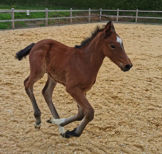 Dieses menschenbezogene Hengstfohlen vom 1,55-platzierten Diamant de Plaisir I entwickelt sich prächtig und kann nach dem Absetzen einem neuen Wirkungskreis Freude bereiten! Mit einer abgesicherten Mutterlinie wird er bestimmt mal ein toller Sportpartner im Parcours. Das letzte Bild zeigt seine Mutter Comtessa Alferate, eine Halbblutstute mit der Staatsprämie, die ebenfalls zum Verkauf steht (Bestandsverkleinerung). In ihrer Leistungsprüfung erhielt sie eine 9,5 für Springmanier und -vermögen.