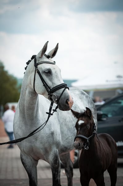 In beste Hände geben wir unsere Bella ab. Sie ist tragend für 2026 vom Landbeschäler Destano. Bella ist optisch etwas ganz Besonderes und besticht durch ihre enorme Bewegungsqualität. Im Umgang ist sie ein absoluter Schatz. Immer lieb und sozial verträglich. Bella hat ein Fohlen von FS Mr Right aus 2023. Die Stute wird demnächst angeritten und kann ebenfalls besichtigt werden. Bella nimmt leicht auf und die Geburt verlief absolut komplikationslos. Sie ist eine tolle Mutter und geht in dieser Rolle auf. Deswegen haben wir sie 2025 wieder besamen lassen. Wir haben Bella seit 2017 und Sie war nie lahm oder krank. Bella kann auch geritten werden, hier benötigt sie aber einen ruhigen und sicheren Reiter, da sie beim Reiten sehr sensibel ist. Bella wurde einmal Dressurpferde A vorgestellt. Die Prüfung beendete sie mit einer 7,2. Auf dem Turnier und auch auf der Fohlenschau zeigte sie sich selbstbewusst und unkompliziert. Bella ist Westfälische Verbandsprämienstute. Wir geben sie nur aufgrund unserer zahlreichen Nachzucht ab und nur in beste Hände.