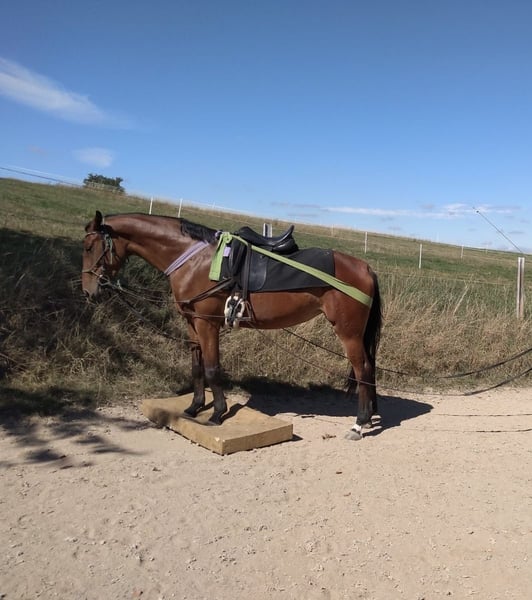 We are looking for a nice new home for our 10-year-old mare Maki (Lifedream S), as we unfortunately have to part with her due to health reasons. Maki is a German Sport Horse (sire: Lord Noble S; dam's sire: Fashion S) with an elegant exterior and is approximately 1.66 m tall. She is a very strong-willed and confident horse, which makes her unaffected by environmental influences. However, she often tests her boundaries during handling, so she is not suitable for beginners. In other moments, she is a real cuddle bug. She has not been ridden much in the arena or on the riding ground (only lunged), as she sometimes has issues with tighter turns. These issues stem from temporary pain conditions that, unfortunately, have not been properly localized even after several treatments by an osteopath and a veterinarian. She has a slight misalignment on her left front leg due to a pasture accident. Maki is familiar with group turnout, a walker, hoof care, and trailer loading. A horse dental pass documenting regular treatments and all necessary vaccinations is available in her equine passport. Her suitability for riding would need to be reassessed. Maki was last ridden in mid-August. Otherwise, she could also take on a new role in breeding or simply be kept as a companion horse. Sale only with a protection contract! Home before price!