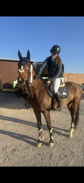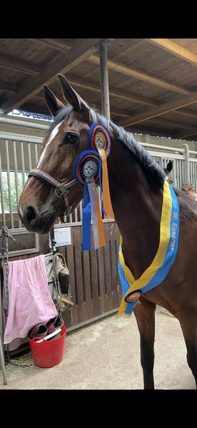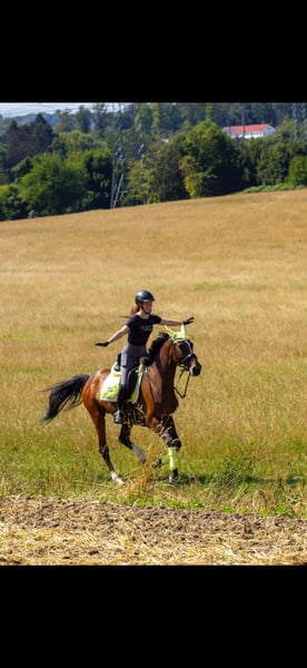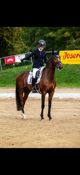 Carpelina is being sold due to my busy schedule with university studies, which I regret very much. Carpelina T is a mare born in 2016, by Carpe-Diem out of Pit I. She impresses not only with her sporting ability but especially with her exceptionally sweet temperament. Carpelina is a very well-behaved horse with a heart of gold – honest, reliable, and always eager to please her rider. Under saddle, she is completely mentally focused, very balanced, and incredibly light to ride. She responds delicately to aids, is very eager to learn, and works with motivation. Carpelina wants to perform well and always gives her rider a sense of security, both under saddle and in handling. In jumping, she requires a confident, calm hand but shows a lot of joy in her work. She has already won L-level jumping competitions and has been jumped higher in training. In dressage, Carpelina has already been introduced up to level L. She was not further trained in this discipline but possesses three very good basic gaits and shows clear potential for further development and advanced training. Carpelina is a very athletic, elegant type, making her perfect for girls or smaller women. She is not a weight carrier. An excellent horse for riders seeking an honest, sensitive, and performance-oriented partner who brings joy both in the show jumping arena and in the dressage ring. She also shows absolute confidence in the terrain, whether alone, in a group, with or without saddle. Personally, I could also imagine Carpelina very well as part of a mother/daughter team, where horse welfare is the top priority and varied work is part of the daily routine. Of course, Carpelina is farrier- and loading-friendly. She comes with a valid TÜV and has never been ill with us! Further information, videos, and trial rides are available upon request at +49 163 1721010.
