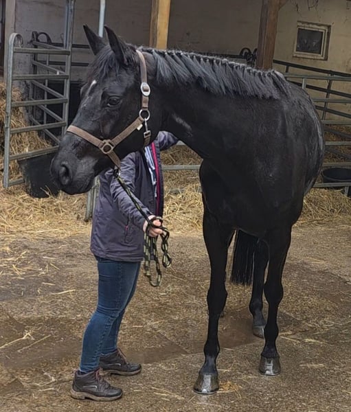 Hermosa y prometedora yegua en proyecto para jinetes de ocio experimentados y entrenadores.