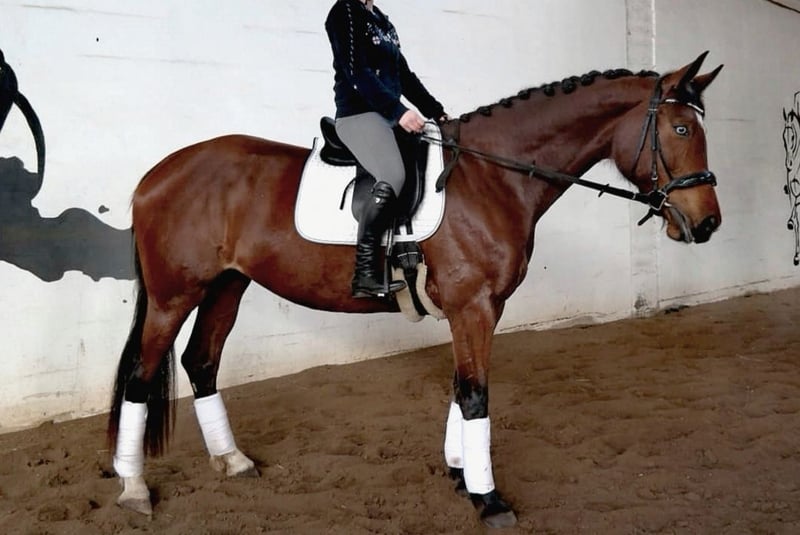 Ich biete meine 10-jährige Stute Ashley (ca. 168 cm) als reines Freizeitpferd zum Verkauf an. Ashley ist eine liebenswerte, motivierte und fein zu reitende Partnerin, die stets mit Freude bei der Arbeit ist. In der Dressur beherrscht sie einige Lektionen, im Springen wurde sie nur wenig gefördert. Bei weiterer, gezielter Förderung hat sie in allen Bereichen viel Potenzial nach oben. Sie geht alleine und in der Gruppe ins Gelände. Allerdings benötigt sie, besonders in den Wintermonaten, eine gute Auslastung, um ausgeglichen zu bleiben. Ashley geht barhuf, ist beim Hufbearbeiten brav und unkompliziert und zeigt sich im täglichen Umgang freundlich und verlässlich. Allerdings ist sie dennoch öfter typisch stutig. Sie steht aktuell in einer gemischten Herde. Ihr komplettes Equipment kann auf Wunsch gerne mitgegeben werden. Ashley hat eine Unverträglichkeit gegen den Influenza-Impfstoff und ist daher nur gegen Tetanus geimpft. Aufgrund ihres Wesens ist sie kein Anfängerpferd – sie braucht einen konsequenten, aber feinfühligen Menschen, der klar und fair mit ihr umgeht. Ashley wird nicht als Turnierpferd verkauft, sondern sucht einen liebevollen Platz als Freizeitpartnerin. Keine Reitschulen oder Händler! Platz vor Preis, kein Notverkauf. Bei ernsthaftem Interesse freue ich mich über eine nette Nachricht mit ein paar Infos zu dir :)