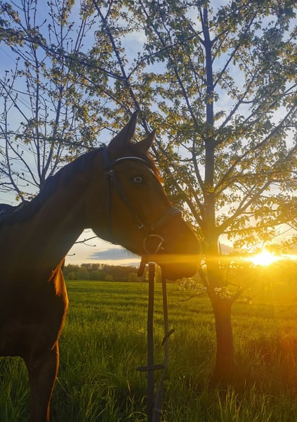 Ich biete meine 10-jährige Stute Ashley (ca. 168 cm) als reines Freizeitpferd zum Verkauf an. Ashley ist eine liebenswerte, motivierte und fein zu reitende Partnerin, die stets mit Freude bei der Arbeit ist. In der Dressur beherrscht sie einige Lektionen, im Springen wurde sie nur wenig gefördert. Bei weiterer, gezielter Förderung hat sie in allen Bereichen viel Potenzial nach oben. Sie geht alleine und in der Gruppe ins Gelände. Allerdings benötigt sie, besonders in den Wintermonaten, eine gute Auslastung, um ausgeglichen zu bleiben. Ashley geht barhuf, ist beim Hufbearbeiten brav und unkompliziert und zeigt sich im täglichen Umgang freundlich und verlässlich. Allerdings ist sie dennoch öfter typisch stutig. Sie steht aktuell in einer gemischten Herde. Ihr komplettes Equipment kann auf Wunsch gerne mitgegeben werden. Ashley hat eine Unverträglichkeit gegen den Influenza-Impfstoff und ist daher nur gegen Tetanus geimpft. Aufgrund ihres Wesens ist sie kein Anfängerpferd – sie braucht einen konsequenten, aber feinfühligen Menschen, der klar und fair mit ihr umgeht. Ashley wird nicht als Turnierpferd verkauft, sondern sucht einen liebevollen Platz als Freizeitpartnerin. Keine Reitschulen oder Händler! Platz vor Preis, kein Notverkauf. Bei ernsthaftem Interesse freue ich mich über eine nette Nachricht mit ein paar Infos zu dir und deinem Pferdeerfahrungsstand.