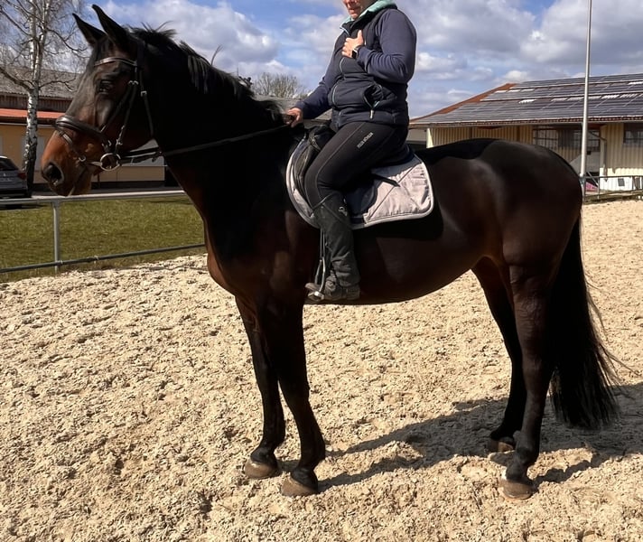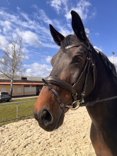 On behalf of the breeder, we are offering a solid 10-year-old DSP mare. She has primarily been used for breeding and was only recently backed. During her last competition season, she managed to place several times in LS jumping classes, although it should be noted that she is quite demanding in the arena and not an easy ride. Additionally, she is of breeding interest, with her dam’s line producing international success up to 1.50 m. She is an honest, completely reliable horse in handling, having even participated in a festive parade, making her an excellent choice as a leisure horse as well. She is being sold due to a reduction in the herd and is only to be placed in very good hands. If interested, I am happy to facilitate contact.
