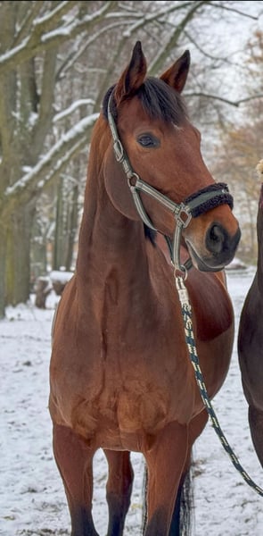 With a heavy heart, I am selling my mare “Pascodia II” for professional reasons. “Sterni” has been in my possession since 2022 and is an absolute all-rounder. She has competed in eventing, show jumping, and dressage. She impresses with her very friendly character and her positive willingness to perform in all three disciplines. Sterni shows no bad habits and is very well-behaved in handling. Due to her size, I can well imagine her as a horse for someone transitioning to a new level. However, since she has a lot of “go” when riding, she is not suitable for weaker riders or beginners! She is also familiar with groundwork, long-lining, and has been ridden in a double bridle. If you have any further questions and/or would like videos, please feel free to contact me. Home before price!