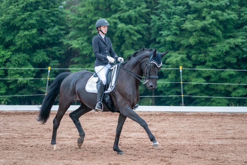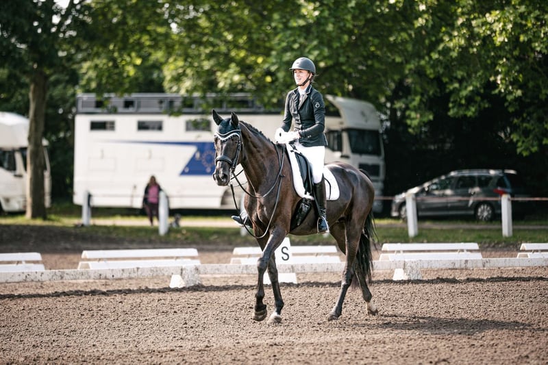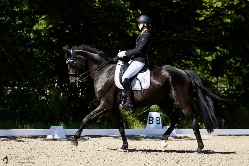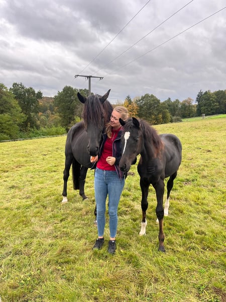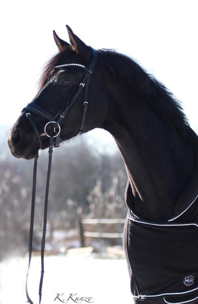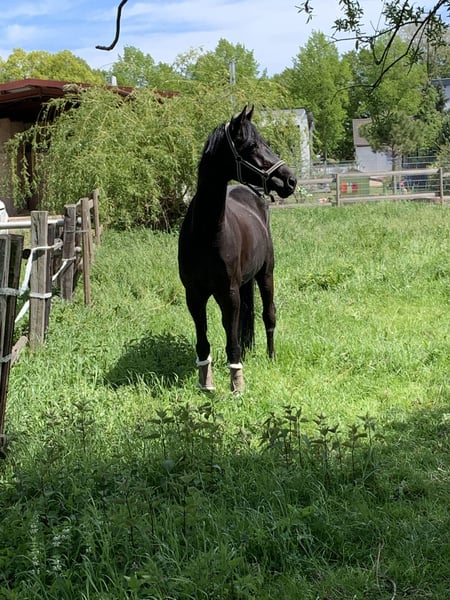 Wunderschönes Mädchenpferd sucht Bestplatz Zum Verkauf steht eine wunderschöne menschenbezogene 11 jährige Rappstute. Im Umgang super brav und zuletzt auch von einem 13 jährigen Mädchen mitgeritten. Glücklicherweise hat sie kein stutiges Verhalten im Umgang. Beim reiten ist sie mit genügend Go ausgestattet, hat aber noch nie einen Reiter verloren. Daher nicht für ängstliche Reiter oder Anfänger geeignet. Sie war Seriensiegreich in Dressurprüfungen der Klasse L und L**. Sie hatte bereits 4 und 9 jährig zwei wundervolle Stutfohlen (darunter ein Warmblutfalbe). Daher auch für Züchter interessant. Bisher hat sie immer direkt beim ersten besamen aufgenommen, einen problemloses Abfohlen gehabt und war eine sehr fürsorgliche Mutterstute. Am liebsten möchte ich sie an einen Freizeitreiter abgeben, der ein gehobenes Freizeitpferd zum Spaß haben sucht. Wir sind wöchentlich ins Auswärtstraining gefahren, was keine Probleme dargestellt hat. Sie geht alleine als auch in der Gruppe ins Gelände. Auch hier hat sie genügend Go, ist aber immer händelbar. Im vergangenen Jahr hatte Elise eine Hufgelenk OP und ist seit dem auf Barhuf umgestellt und wieder im Training. Die OP lieferte allerdings keinen Befund. Bzgl. der gesundheitlichen Details gebe ich gerne bei erstem Interesse weitere Auskunft. Sie liebt Bodenarbeit und begrüßt ihre Bezugsperson täglich mit einem Wiehren. Ich wünsche mir ein 5-Sterne zu Hause mit täglichem Koppelgang als Endplatz für sie. Bei mir ist sie täglich den ganzen Tag draußen. Sie stand bereits in der Herde, zu zweit, als auch alleine. Bisher konnte sie sich mit allem arrangieren. Wenn du ein täglich motiviertes und sehr menschenbezogenes Pferd suchst, könnte Elise dein Traumpferd sein. Bei Interesse freuen wir uns Euch kennenzulernen.