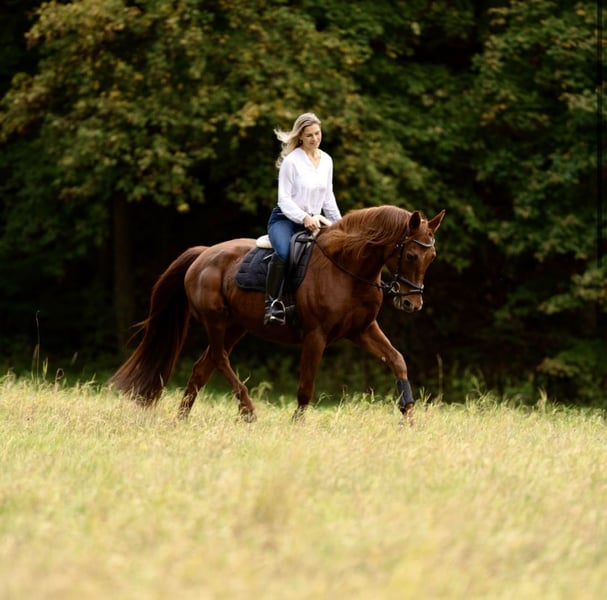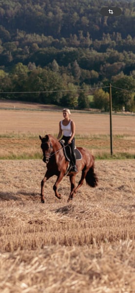 Verkaufe deutsches Sportpferd – Stute, geb. 2015, Dunkelfuchs, Stockmaß ca. 175 cm. Dieses elegante und vielseitige Pferd ist ideal für den Freizeitbereich geeignet. Sie überzeugt durch ihre angenehme Art, gute Grundgangarten und ihre Bereitschaft, Neues zu lernen. Perfekt für Reiter, die ein zuverlässiges und charakterstarkes Pferd suchen und auch gern Abwechslung zum Reiten einbauen (regelmäßige Bodenarbeit). Bei Interesse stehe ich gerne für weitere Informationen und eine Besichtigung zur Verfügung. Es ist kein Notverkauf und eine Haltung mit Heu ad lib ist Voraussetzung.
