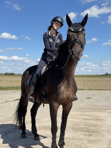 For more photos, follow us on Instagram: reitsport_team_david I am selling my wonderful DSP sport mare Ludmilla. She is a competition horse, already placed in Dressage A and trained up to L level, with potential for more. She comes from Moritzburg. She has excellent basic gaits. Born in 2013. Height: 173 cm. She possesses great dressage ability. Ludmilla is in training and has competition experience. She loads well and gets on the trailer without any issues, with regular training. A vet check is possible without any concerns. Videos available upon personal request after an initial phone call. As Ludmilla does not necessarily need to be sold, she will only be sold to the right buyer if everything fits. Father: MILLENIUM (from Moritzburg) X Mother: LUDMILA All further details personally; price negotiations will only be conducted on-site. There is a cost of €30 for trial riding, which will be deducted from the purchase price. According to new EU law, the following sentence applies: The sale is made under exclusion of any liability for material defects. "I exclude any liability for material defects; the information is provided without guarantee. Liability for damages due to injury to health, body, or life and grossly negligent or willful violations of my duties as a seller remains unrestricted and unaffected." According to the new EU law, the following conditions apply: This sale is a purchase contract from private to private according to § 13 BGB. The sale is made under exclusion of any warranty, guarantee, and return. According to § 447 BGB, the risk passes to the buyer upon handover to the shipping or the buyer.