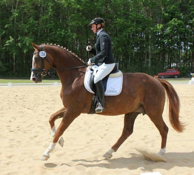 In vendita una fattrice di proprietà della nostra famiglia, proveniente dalla nostra scuderia di allevamento. Imana è una femmina di 15 anni, completamente addestrata e versatile. Nel corso della sua carriera ha ottenuto grande successo sia in ambito sportivo che come cavalla da riproduzione, motivo per cui porta il prefisso DSP. Ha completato senza errori le gare di salto ostacoli fino a S e ha ottenuto risultati fino a M**. Con una giovane amazzone ha superato diverse prove di attestati di equitazione, si è piazzata in dressage di livello E e A e ha vinto fino a salto A. Grazie alla sua ottima conformazione generale, ha vinto numerose prove di salto per cavalli giovani già a tre anni. Ha ricevuto un’educazione molto solida e padroneggia con sicurezza esercizi come le supplenze, il galoppo laterale e i cambi di galoppo volanti. Come fattrice ci ha regalato sempre puledri sportivi, grandi e con lunghe gambe, dotati di eccellenti caratteristiche caratteriali. È una madre molto affidabile, le nascite sono sempre avvenute senza complicazioni. Imana è sicura in terreni accidentati, mansueta, adatta alla vita in branco, e è rispettosa del ferratura e del carico sul camion. Desideriamo trovare per Imana una famiglia che possa offrirle una bella sistemazione, magari come insegnante o per continuare a valorizzare le sue qualità da riproduttrice. A causa del suo successo come produttrice di ottimi discendenti, la cediamo solo a persone di assoluta fiducia. Per evitare il turismo equestre, chiediamo una quota di 30 € per ogni prova di monta, che verrà detratta dal prezzo di vendita.