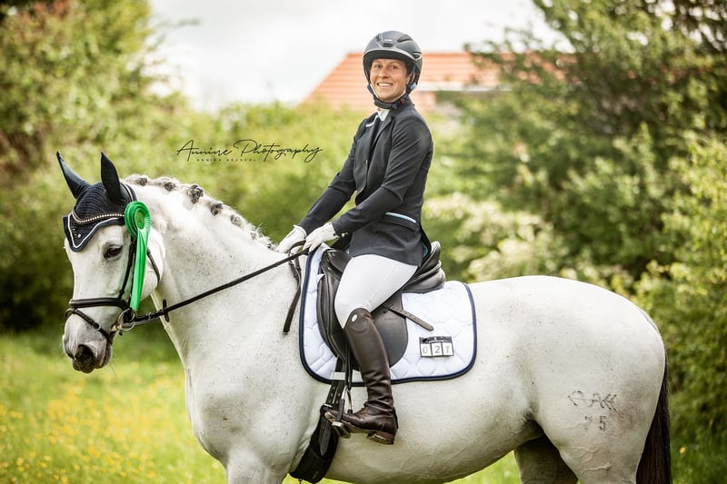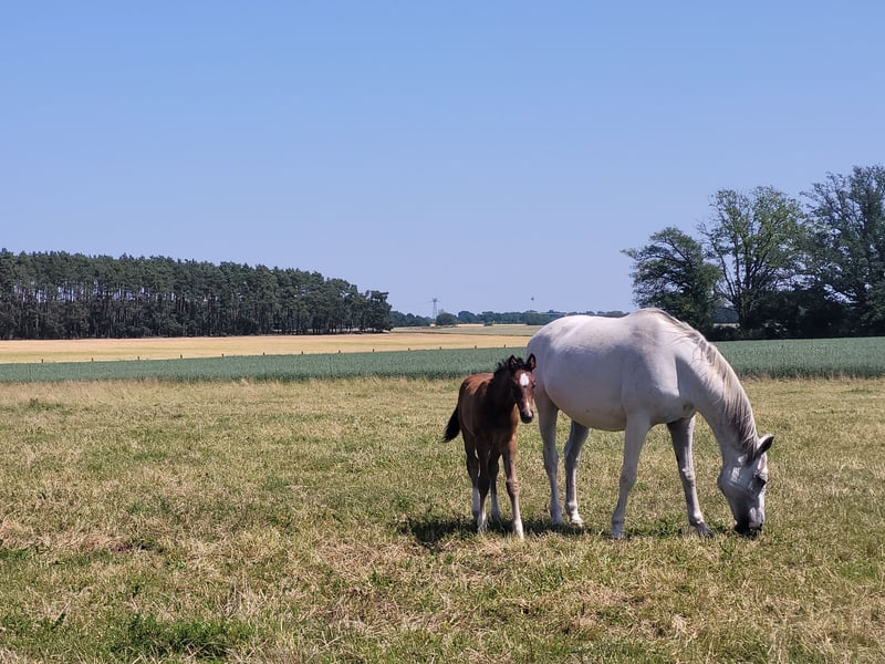 Niestety, muszę rozstać się z moją ukochaną klaczą Clärchen (Classic Queen 3). To dla mnie bardzo trudne, ponieważ towarzyszyła mi i mojej córce przez tak długi czas. Zdobyła zwycięstwa w skokach przez przeszkody (i była wielokrotnie plasowana, co wystarcza do wpisu do księgi hodowlanej) oraz odnosiła liczne sukcesy w konkursach klasy A i L. W ujeżdżeniu jest plasowana do poziomu klasy A. Wielokrotnie brała udział w pokazach z moją córką, w tym w konkursach w strojach, oraz niezawodnie startowała w zawodach WBO. Ze względu na niejasną kulawiznę dwa lata temu przeszła na hodowlę (posiada wyniki scyntygrafii i rentgena bez odchyleń, brak przeciwwskazań do hodowli), a w minionym sezonie miała zdrowe, ładne źrebię i jest obecnie w ciąży z Arezzo Man (zwycięzca BuCha pod Sophie Hinners). Termin porodu przewidziany jest na maj 2026. Zarówno przy pierwszym źrebięciu naturalnym, jak i przy inseminacji, była od razu w ciąży. Po porodzie będzie można ją ponownie wytrenować, a prawdopodobnie także wystartować jeszcze raz w WBO lub cieszyć się pięknymi przejażdżkami. Nie jest sprzedawana jako koń turniejowy. Clärchen to koń o wielkim sercu, łagodny i posłuszny w obsłudze, także dla dzieci. Zawsze zmotywowana do skoków, ale jednocześnie łatwa w prowadzeniu. Idealny koń dla rodziny i amatorów. Posłuszna, ale nigdy nie nudna czy leniwa. Z łatwością znosi czyszczenie kopyt i załadunek – to po prostu skarb wśród koni, z wspaniałym nastawieniem do pracy. Clärchen jest oferowana wyłącznie ze względu na zmniejszenie stada. Źrebię powinno pozostać w naszym posiadaniu, ale w razie zainteresowania może być sprzedane razem z nim. W razie zainteresowania proszę o kontakt.