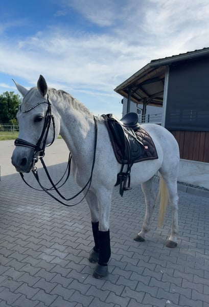 Fabienne hat ein Stockmaß von 1,68m und ist 16 Jahre alt. Da sie sehr spät angeritten wurde, merkt man ihr das Alter nicht an. Sie ist brav im Umgang und geduldig mit Kindern, jedoch ist sie kein Anfängerpferd, da sie Sicherheit vom Reiter benötigt. Sie ist sensibel und hat viel Go. Die letzten Jahre wurde sie hauptsächlich dressurmäßig geritten. Die Lektionen der Klasse L sind sicher abrufbar, sowie sämtliche Seitengänge. Außerdem springt sie beide Wechsel und kann passagieren. Zur Abwechslung wurden niedrige Gymnastiksprünge eingebaut. Im Freispringen zeigte sie sich sehr talentiert. Sie ist geländesicher, aber in der Gruppe entspannter und hat keine Angst vor sämtlichen großen/ lauten Fahrzeugen. Ich kann sie mir gut bei einem ambitionierten Reiter mit Gefühl und Durchsetzungsvermögen vorstellen, ggf. auch als Einstiegspferd in die Vielseitigkeit. Sie liebt Wasser. Regelmäßiges Hängerfahren ist sie gewöhnt, egal ob alleine oder zu zweit, sie ist in jeder Situation unkompliziert zu verladen. Dies ist kein Notverkauf. Die Stute wird nur in fördernde und liebevolle Hände mit artgerechten Haltungsbedingungen abgegeben. Aktuell steht sie in einer gemischten Herde in einem Offenstall. Videos können gerne per WhatsApp verschickt werden und für alle weiteren Fragen kann gern eine Nachricht mit Telefonnummer hinterlassen werden.
