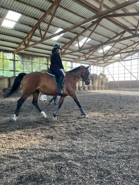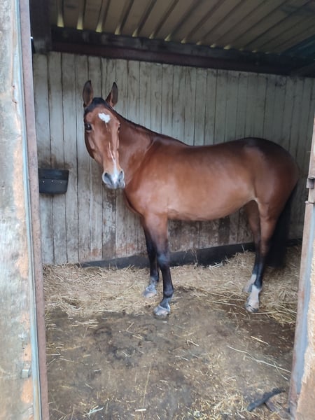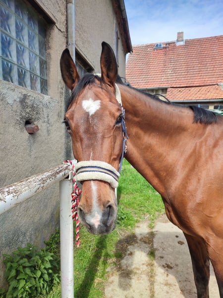 Ich suche für meine 18-jährige Warmblutstute Amber ein neues Zuhause als Freizeitpferd. Aufgrund von persönlichen/privaten anstehenden Veränderungen werde ich leider nicht mehr in der Lage sein, mich so um sie zu kümmern, wie sie es verdient hätte. Für ihre 18 Jahre ist Amber noch top fit. Sie hat ein Stockmaß von 1,66 m und selbstverständlich einen Pass, ist regelmäßig geimpft und entwurmt. Amber liebt die regelmäßige Arbeit und hat sehr viel Spaß daran, aber auch kein Problem damit ihre Zeit auf der Koppel zu genießen. Sie testet gerne ihre ReiterIn (ganz Stute) ist aber mit klaren Anweisungen und Impulsen ein absolutes Lehrpferd und einfach traumhaft zu reiten. Sie hat mit unter einen spritzigen Galopp, geht dabei aber nicht durch und lässt sich gut händeln. Trotzdem ist Amber kein Anfängerpferd, da sie reiterliche Unsicherheit auch für sich zu nutzen weiß. Im Sommer hat sie hinten häufiger dicke Beine. Dies schränkt sie jedoch nicht ein und ist nach Bewegung kein Thema mehr. Sie ist Schmiedefromm, komplett beschlagen und im Winter geschoren. Amber ist nicht verladefromm und stand in den letzten Jahren auf der Koppel eher alleine. Abzugeben mit allem Zubehör (Sattel auf Anfrage) was sie besitzt (Decken, Trense, Halfter, etc.) Meldet euch bei ernsthaftem Interesse gerne für weitere Infos und ein erstes Kennenlernen unter 01725154779
