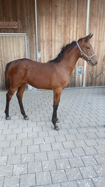 Elin ist ein sehr aufgewecktes, hellwaches und bewegungsfreudiges Stutfohlen, abstammend von Vater: Elton(Emerald van het Ruytershof) und Mutter:Samina(Messenger x Conthargos/Stakkato). Beide Linien weisen absolute Springpferdegene auf, die eigentlich jeder kennt, der im Springsport zuhause ist.