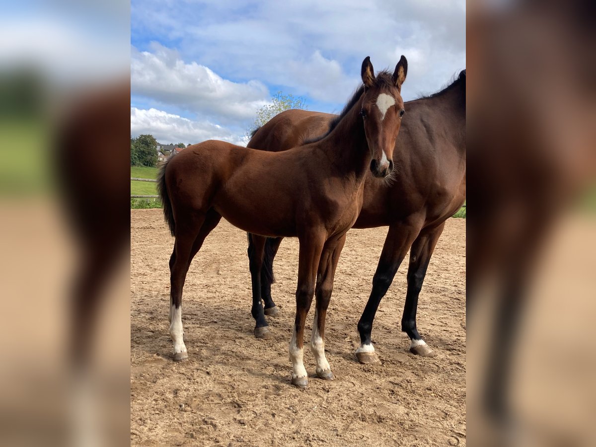 For Sale: German Sports Horse A promising mare, a German sports horse born in 2025, is available. She features an elegant bay coat and has an approximate final height of 16.1 hh. This mare is particularly well-suited for show jumping. Her friendly and outgoing nature makes her an ideal partner for riders seeking a reliable and high-performance horse. She has an impeccable character and excellent conformation. If you are interested or would like more information, please feel free to contact me. Don’t miss the opportunity to acquire a talented horse with great potential for the future!