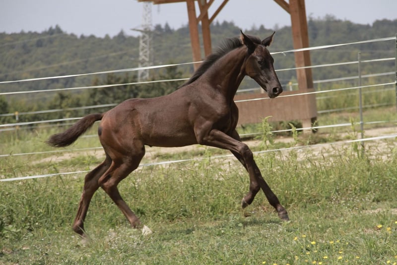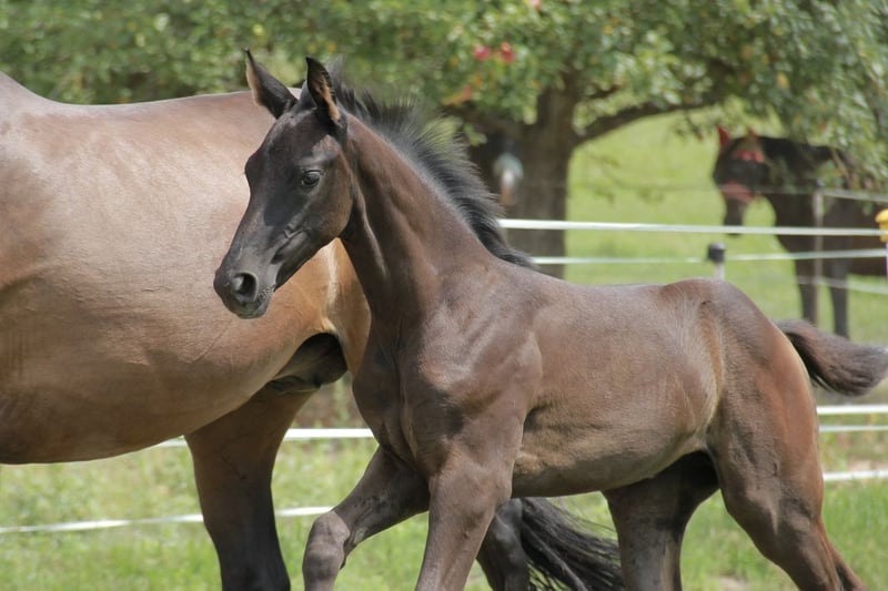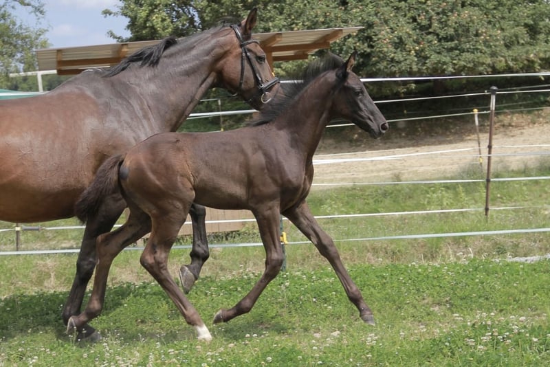 Wir bieten hier ein wunderschönes, bewegungsstarkes Stutfohlen mit allerbestem Charakter an, unglaublich unkompliziert, lieb und verschmust - freut sich immer wenn der Mensch kommt. Tiana besticht außerdem durch ein absolut korrektes und stabiles Fundament und 3 völlig klare und korrekte GGA, wodurch die besten Voraussetzungen für lange Gesundheit und Haltbarkeit gegeben sind. Mutter und Halbschwester können besichtigt werden und bestätigen dies, ebenso wie der Halbbruder der letztes Jahr gekört wurde! Beide Geschwister waren auch super brav und einfach beim anreiten! Tiana wurde am 14.06.2025 geboren und war bereits in dem jungen Alter auf der Fohlenschau sehr lieb und unkompliziert - auf dem jüngeren Video ist sie erst 4 Wochen alt! Trotzdem hat sie bereits eine Silberprämie vom Verband erhalten! Sie ist natürlich bereits halfterführig, kennt das Fohlen-ABC und ist mit ihrer Mutter zusammen schon Hänger gefahren. Auch die ersten Ausritte bei Fuß ihrer Mutter hat sie schon völlig souverän und unerschrocken gemeistert. Geschätzt wird sie ca. 170cm groß. Wir wünschen uns eine liebevolle und artgerechte Aufzucht und können sie uns später in verschiedenen Bereichen vorstellen, wobei ihr das Dressurtalent von ihrem Vater natürlich in die Wiege gelegt ist. Bei Bedarf kann sie nach dem Absetzen auch gern ins neue Zuhause gebracht werden. Standort ist 69151. Gern einfach melden und vorbeikommen, hier wächst eine ganz tolle junge Dame heran!