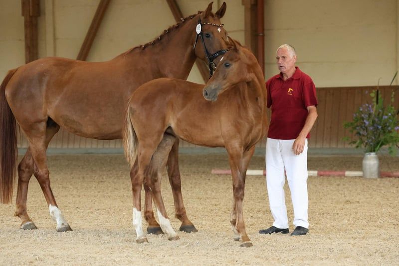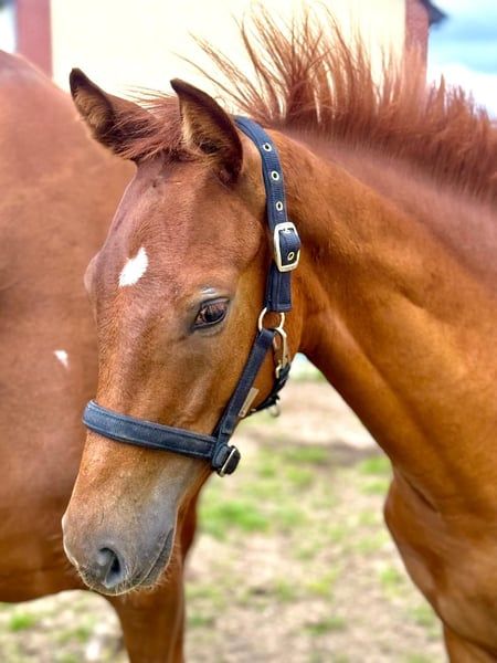 For Sale: German Sport Horse This stunning chestnut mare, Quina from Marienhof, is a talented and correctly built German sport horse with great potential for dressage and an impressive pedigree. She is suitable for ambitious dressage riders as well as for sport-oriented leisure riders who value quality, character, and future prospects. ⸻ Pedigree Details Her sire, Quaterback (DSP), is one of the most influential dressage sires of his generation. His offspring impress internationally with rideability, presence, and successes up to Grand Prix level. The dam line also boasts proven performance potential, with notable ancestors such as Don Royal, Don Juan de Hus, Rubin-Royal, Jazz, and Rubinstein I, representing modern dressage lineage and reliable willingness to perform. ⸻ Movement & Conformation Quina was awarded an 8.0 at her foal inspection for type, conformation, and movement—a clear indication of her solid quality. She demonstrates rhythmic, elastic basic gaits in free movement, with an active hind leg and elegant uphill carriage. Her harmonious build, expressive appearance, and long lines make her a true eye-catcher with great potential. ⸻ Temperament & Daily Handling Quina impresses with her balanced, friendly nature. She is human-oriented, clear-minded, and shows herself to be open, attentive, and eager to learn in daily handling. For further information or if you are interested, please feel free to contact me. Visits can be arranged by appointment. We look forward to your inquiry!