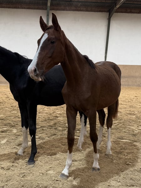 Questa bellissima cavalla è un vero talento emergente per il dressage e si distingue per i suoi movimenti eleganti e di grande struttura. Ha tutto ciò che serve per diventare una futura stella del dressage e colpisce anche per il suo carattere eccellente. Molto affettuosa e tranquilla nel maneggio, offre una gioia assoluta. Alla fine del 2024 è stata svezzata e ora si trova, in modo appropriato per la sua età, con altri puledri in un paddock, dove può crescere in un ambiente naturale. La cavalla proviene da una fattrice esperta e i suoi fratelli maggiori possono essere visionati in loco. Un ulteriore allevamento in loco è possibile previo accordo. A causa di una riduzione del numero di animali, viene ceduta al di sotto del suo valore – un'opportunità unica per acquisire un promettente cavallo giovane! ------- Tutti i nostri cavalli in vendita sono stati regolarmente vaccinati e sverminati sin dalla nascita. Per ulteriori dettagli e domande sui cavalli in vendita, vi preghiamo di contattarci telefonicamente; i messaggi saranno risposti solo in modo limitato.