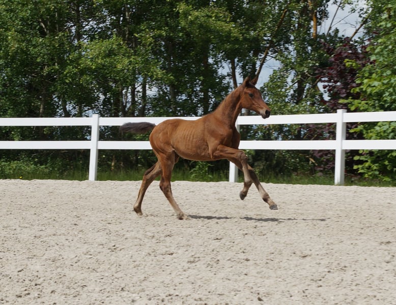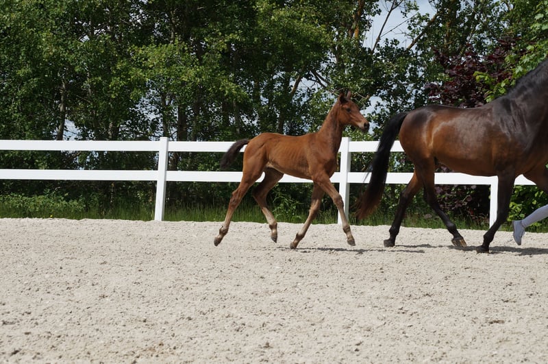 This typy colt with jumping potential and impressive gallop comes from the first crop of the Hanoverian Chawonix. Chawonix, a promising stallion from the 2021 crop, impresses early on with his potential. Although he has not yet achieved any sporting successes himself, he has already been awarded as a premium stallion. His pedigree, however, promises great things. His sire, the Mecklenburg stallion Chacoon Blue, has impressively proven his class in show jumping with over 80 placements in more than 190 starts and has over 800 offspring. The dam of Chawonix, the Hanoverian mare Va-Verdi Crazy Love, brings another dimension of quality to the breeding line with her sire, the Belgian Warmblood Vagabond de la Pomme. Vagabond de la Pomme himself has achieved over 70 placements in 171 starts and is the sire of over 500 offspring. With this outstanding genetic foundation, Chawonix is eagerly anticipated in the breeding scene. The first foals born this season could mark the beginning of a new success story. His hereditary power, supported by the impressive performances of his ancestors, gives hope for a successful future both in sport and in breeding. The dam of the offered foal is a daughter of the Thoroughbred Ituango xx. Ituango xx was successful in flat racing and has already impressively proven his breeding power. Of 115 offspring, one (Airman xx) has been licensed, five mares have been state premium awarded, and 31 are successful in dressage, show jumping, eventing, and driving up to the advanced level. In the descending line of the dam, proven stallions can be found, suggesting a future for the foal in eventing or show jumping. Another show jumping foal (filly) by Lausitzer-Cheetano-Contenaro is also available. Please only make inquiries by phone at: 00491716429595.