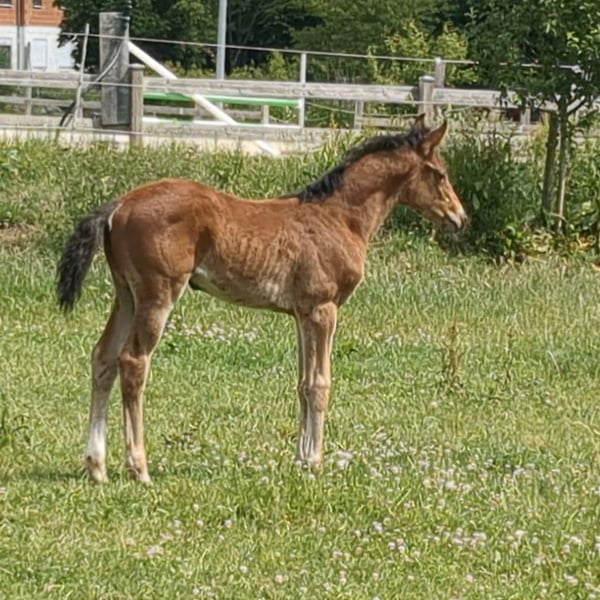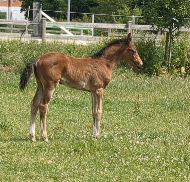Aus eigener Zucht bieten wir dieses typvolle, schicke und sportliche Stutfohlen mit korrektem Fundament an. Vater Chaloubino PS war erfolgreich in internationalen Youngstertouren vertreten und im Finale der Springpferde-WM in Lanaken/BELbelegte er den siebten Platz. Außerdem hat er mit Cento und Baloubet du Rouet hochkärtige Springgenetik in seinem Pedigree vorzuweisen. Die Mutter wurde bis 105 cm vorgestellt. Ihr Vater Jama van de Heffinck war bis S** erfolgreich. Nähere Infos und Videos gerne per WhatsApp!!!