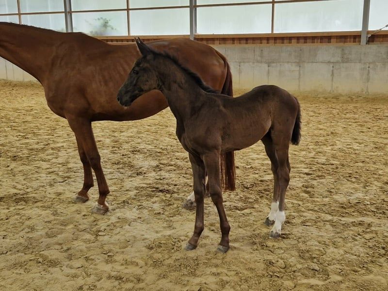 Wunderschönes Rappstutfohlen mit auffälliger Bewegung und besten Voraussetzungen für Sport und Zucht Zum Verkauf steht ein bezauberndes Rappstutfohlen mit außergewöhnlichem Charme und Ausdruck. Sie überzeugt nicht nur durch ihr edles Erscheinungsbild und einem hübschen Stern, sondern auch durch ihre herausragenden Grundgangarten. Der Trab ist schwungvoll mit viel Dynamik und Ausdruck. Der Schritt zeigt sich großzügig, taktsicher und mit viel Raumgriff. Auch im Galopp präsentiert sie sich stets in klarer Bergauftendenz., kraftvoll und gut ausbalanciert. Dieses Fohlen bringt beste Anlagen für eine erfolgreiche Karriere im Dressurviereck mit, ist aber auch aufgrund ihrer Abstammung und Exterieur eine interessante Option für die Zucht. Der Halbbruder der Mutter ist kein geringerer als Kristana Olsons Erfolgspferd Felipe von Fürstenball/Scolari https://www.berufsreiter.com/sueddeutsches-berufsreiterchampionat-dressur-an-kristina-olson/ Stamm des Hengstes Seatlle: Als Mutter dieser zahlreichen Ausnahmepferde verantwortlich zeichnet sich die Ausnahmestute Weihegold OLD. Sie war Oldenburger Siegerstute, Burg-Pokal- und Louisdor-Preis-Gewinnerin und unter Isabell Werth Olympia- und dreifache Weltcup-Siegerin sowie vierfache Europameisterin. Der Oldenburger Stutenstamm der Weissena kombiniert mit dem so erfolgsverwöhnten hannoverschen Stamm der Noreja, aus dem So Perfect entstammt, verspricht Leistungsabsicherung auf allerhöchstem Niveau.