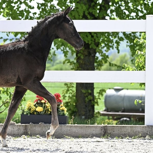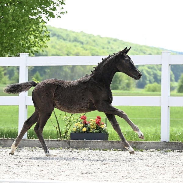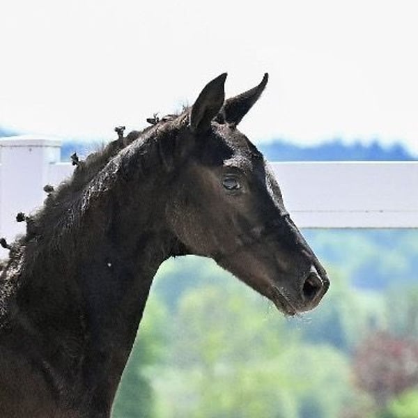 Tempranilla SF de TIE BREAK et de Florentina (Florestan x Weltmeyer). Le père TIE BREAK de la station de monte Schockemöhle a été double vainqueur du HLP avec des notes exceptionnelles de 9,17 et 8,70. Lors de sa première épreuve de chevaux de selle, il a immédiatement terminé à la première place sous la conduite de Lukas Fischer. La mère du poulain, Florentina, a notamment donné naissance à Revoluna, primée avec la 1d lors de la Herwart von der Decken-Schau et désormais classée M*.
