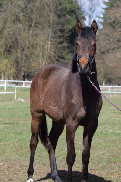 Zum Verkauf steht unsere attraktive, braune 2-jährige Stute Lady Liberty mit einem aktuellen Stockmaß von ca. 1,57 m. Lady überzeugt durch ihr freundliches, ausgeglichenes Wesen sowie ihre gute Händelbarkeit. Altersentsprechend ist sie noch roh und bietet somit ideale Voraussetzungen für eine individuelle, sportorientierte Ausbildung. Besonders hervorzuheben sind ihr angenehmes Temperament, ihre klare Einstellung und ihr Potenzial, sich zu einem zuverlässigen Partner im Vielseitigkeitssport zu entwickeln. Abstammungsseitig bringt sie alles mit, was man sich für ein modernes Vielseitigkeitspferd wünscht: Sie ist eine Tochter des Vollbluthengstes Innenminister xx, der für Härte, Leistungsbereitschaft und den gewünschten Blutanteil steht – wichtige Eigenschaften für den Geländeeinsatz. Mütterlicherseits führt sie über Colestus wertvolles Springblut von Cornet Obolensky, was zusätzlich Vermögen und Technik erwarten lässt. Damit vereint Lady eine spannende Kombination aus Blut, Vermögen und Rittigkeit – beste Voraussetzungen für den Einsatz im Vielseitigkeitssport. Aufgrund ihrer interessanten und leistungsgeprägten Abstammung ist sie zudem auch für die Zucht äußerst attraktiv. Der Verkauf erfolgt aufgrund einer Bestandsverkleinerung. Bei Interesse oder für weitere Informationen freuen wir uns über Ihre Nachricht!
