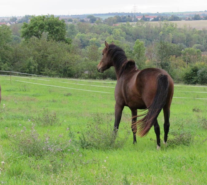 **Verkaufsanzeige: Deutsches Sportpferd** Zum Verkauf steht eine vielversprechende Stute vom Holsteinersiegehengst Esmeraldo der Hengststation Völz. Sie ist geboren im Mai 2023. Diese elegante braune Dame hat sehr gute Grundgangarten und viel Kraft im Antritt. Ihre Mutter ist zeitlebens Zuchtstute und hat bisher immer Prämienfohlen gebracht. Sie selbst ist als Verbandsprämienstute eingetragen und zeichnet sich durch ein blutgeprägtes Exterieur aus. Demzufolge kann man auch eine Eignung für den Vielseitigkeitssport erwarten. Escaley ist bestens geeignet für ambitionierte Reiter, die auf der Suche nach einem talentierten Partner für den Springsport sind. Mit ihrem sportlichen Typ und ihrem freundlichen Wesen bringt sie das Potenzial mit, sich in der Zukunft auch auf Turnieren zu beweisen. Aber auch der Einsatz in der Zucht und im Freizeitbereich sind aufgrund ihres freundlichen Charakters sehr gut vorstellbar. Unsere Pferde leben ganzjährig draußen im Herdenverband. Den Sommer verbringen sie auf weitläufigen Wiesen. Im Winter steht ihnen ein Offenstall mit einer großzügigen Winterweide zur Verfügung. Bei Interesse oder für weitere Informationen stehe ich Ihnen gerne zur Verfügung. Besuchen Sie uns und lernen Sie unsere Stute persönlich kennen!