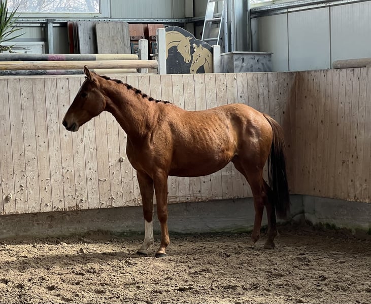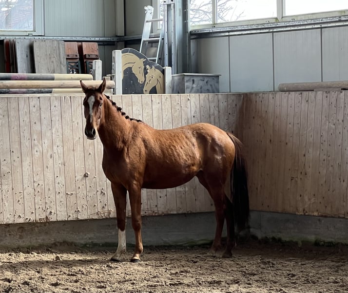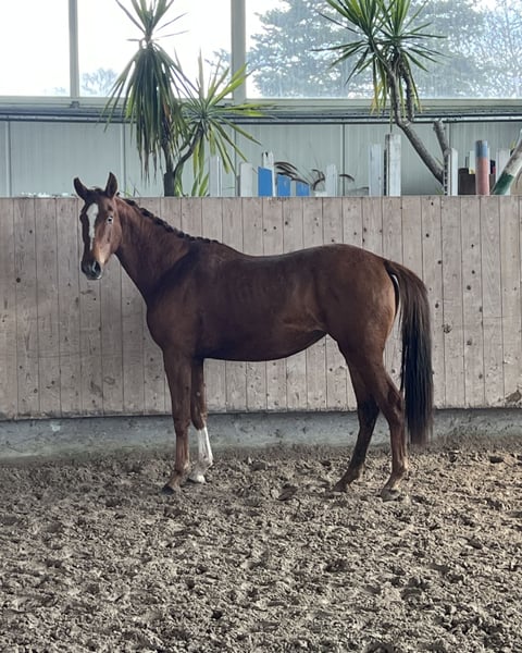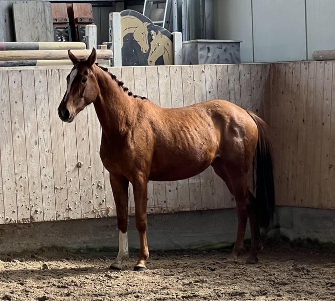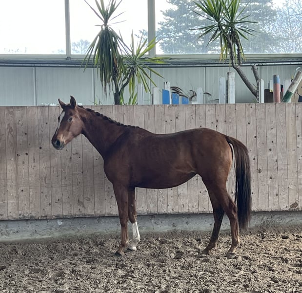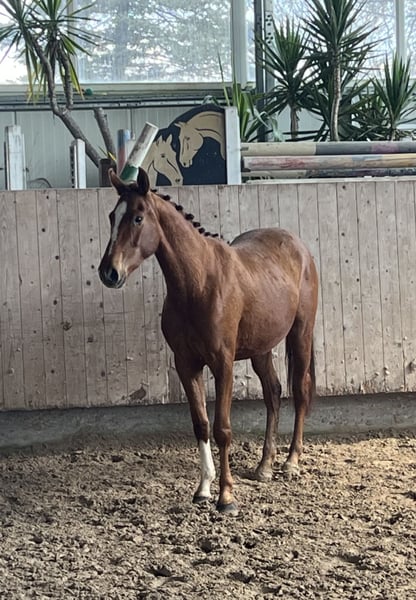 3j rohe Stute v. Va Bene x Donnerhall. Mit ihren 1,53m ist sie für uns leider zu klein geblieben, aber durch ihre guten Bewegungen kann sie sicher eine andere Person glücklich machen. Sie ist noch roh. Video kann gerne per WhatsApp zugeschickt werde. 00491735437134