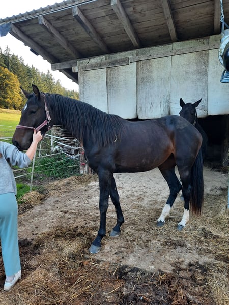 Diese Bildhübsche springgezogene Stute von UNO 1 aus einer Kandarco Stute sucht ein neues schönes Zuhause. Sie hatte einen Weideunfall als sie ein halbes Jahr alt war, dieser hat sich komplett verwachsen ( unsere Physiotherapeutin sagt dieses Pferd wird mit richtigem Training in alleine breichen voll einsetzbar sein) Sie kennt Hufschmied, ist entwurm und geimpft. Sie ist kopfklar und verschmust, allerdings wird sie im April erst 3 Jahre alt, daher noch komplett roh. Ich mach keine Geschäft mit minderjährige und wenn ernsthaft Interesse besteht beantworte ich gern weitere Fragen.