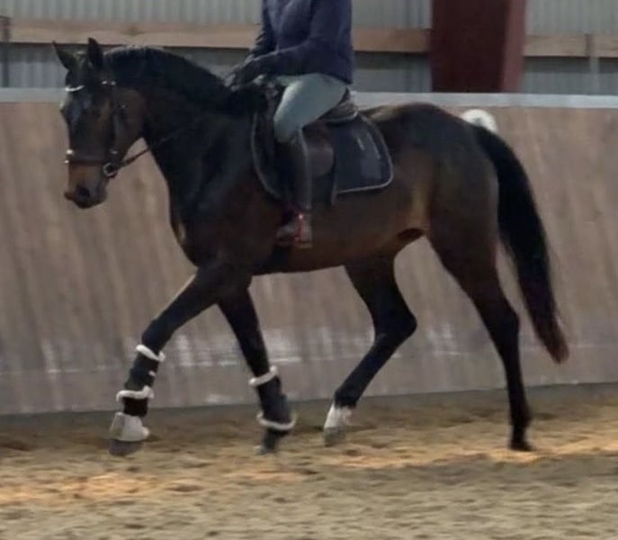 Zum Verkauf steht dieses 1,65 m grosse Talent. Sie ist seit 4 Monaten unterm Sattel und zeigt sich sehr brav und arbeitswillig. Sowohl im Dressurviereck als auch am Sprung macht sie einen sehr guten Eindruck. Platzierungen im Freispringwettbewerb und in Reitpferdeprüfung bereits vorhanden. Sie wird nur in sportfördernde Hönde verkauft. Videos können gerne per WhatsApp angefordert werden.